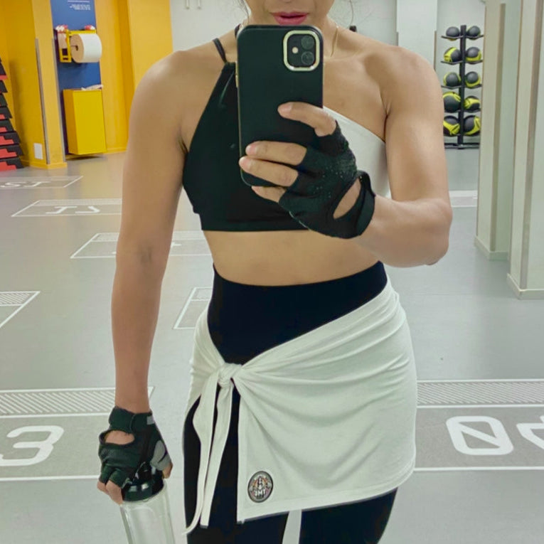 Kjolen kan bäras ovanpå träningsbyxor, shorts eller leggings och passar lika bra för inomhus- som utomhusaktiviteter. Den fungerar även utmärkt som en elegant balettkjol.