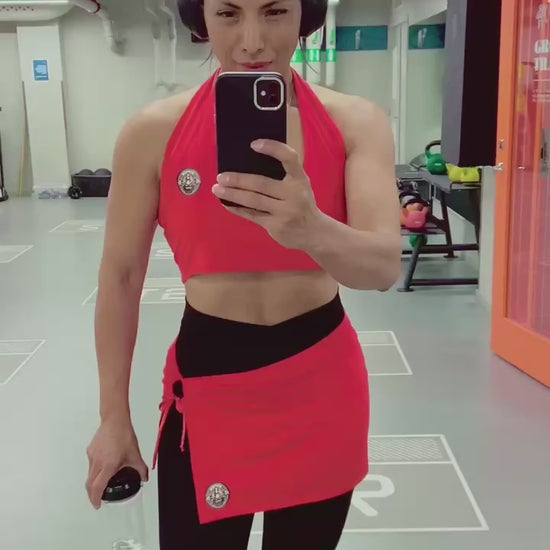 Kjolen kan bäras ovanpå träningsbyxor, shorts eller leggings och passar lika bra för inomhus- som utomhusaktiviteter. Toppen kan bäras ovanpå tränings behå eller bara behå. Den fungerar även utmärkt som en elegant balettkjol och toppen kan användas med, jeans, shorts eller andra kvinnoplagg.